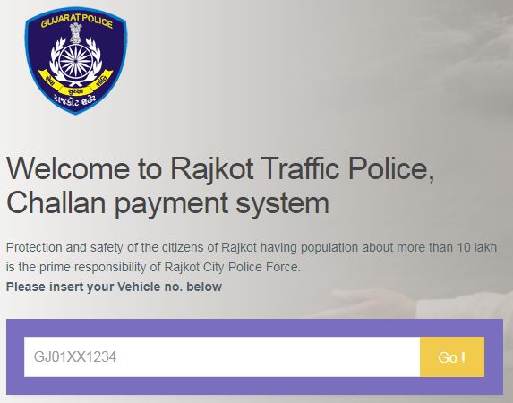 You can Check traffic challan of Rajkot Traffic Police online and pay Traffic fine amount by using the e-payment system of Rajkot Traffic Police. There is no need of visiting the office of Traffic Department for paying traffic fine. The payment can be done online by following few steps to search traffic challan online and pay the amount to Rajkot Traffic Police. The steps to search challan and pay fine are explained here: